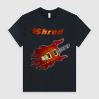 Shred Flame Guitar design features Macka's own uniquely modified flame guitar larger design graphic for XL & Up